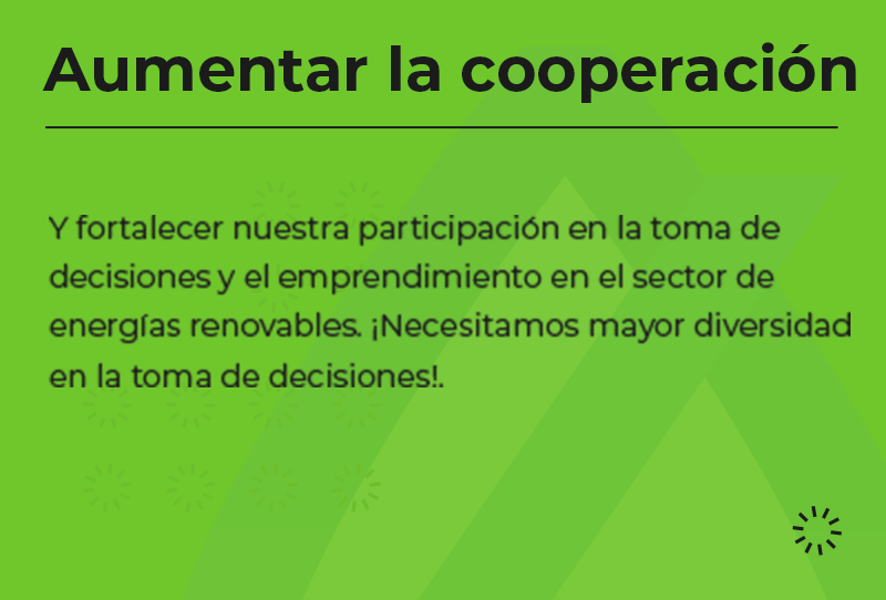 Somos una red de mujeres latinoamericanas enfocadas en energías renovables y dispuestas a colaborar y ampliar las oportunidades de todas y todes hacia una comunidad más inclusiva.